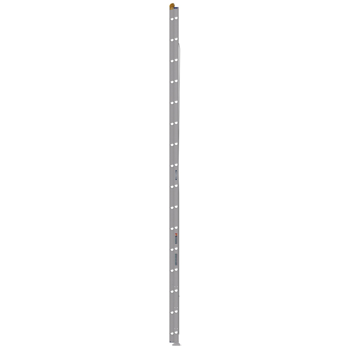 The D1332-2 features a 250 lb duty rating with heavy-duty modified I-beam side rails and slip-resistant Traction-Tred D-rungs. Spring-loaded rung locks operate smoothly and interlocking side rails enhance stability. SHU-LOK shoes rest flat on a slip-resistant pad or lock into a spur position for various surfaces. Mar-resistant end caps help protect contact surfaces, and exclusive Alflo rung joints deliver twist-proof performance. Approx. product dimensions: 192 in L x 17.4 in W x 5.4 in H; weight 63.5 lb.