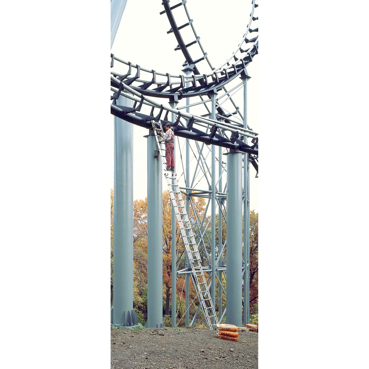 The D1524-2 features extra heavy-duty I-beam side rails with a 300 lb duty rating. Base and fly sections separate easily for use as two single ladders. Guide brackets aid smooth raising/lowering, while the exclusive Alflo rung joint delivers Twist-Proof stability. Slip-resistant Traction-Tred D-rungs, SHU-LOK shoes for flat or spur positions, and rugged spring-loaded rung locks enhance safety and durability. Mar-resistant end caps protect contact surfaces. Approx. product size: 144 in L x 18.125 in W x 6 in H; weight 45 lb.