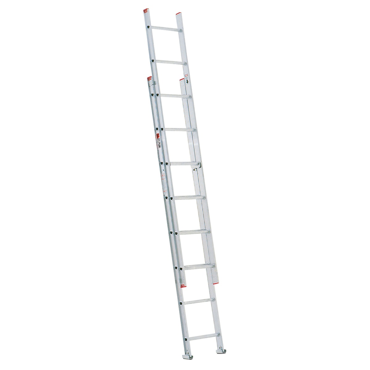 The D716-2 is a lightweight aluminum extension ladder with a 200 lb duty rating. It features fixed locks for simple push-up height adjustments and Werner?s exclusive Alflo? rung joint for Twist-Proof? performance. Mar-resistant end caps protect the resting surface, Traction-Tred? D-rungs provide slip resistance, and modified I-beam side rails add strength. Includes pivoting shoe with slip-resistant pad. Two sections, 2 x 8 rungs.