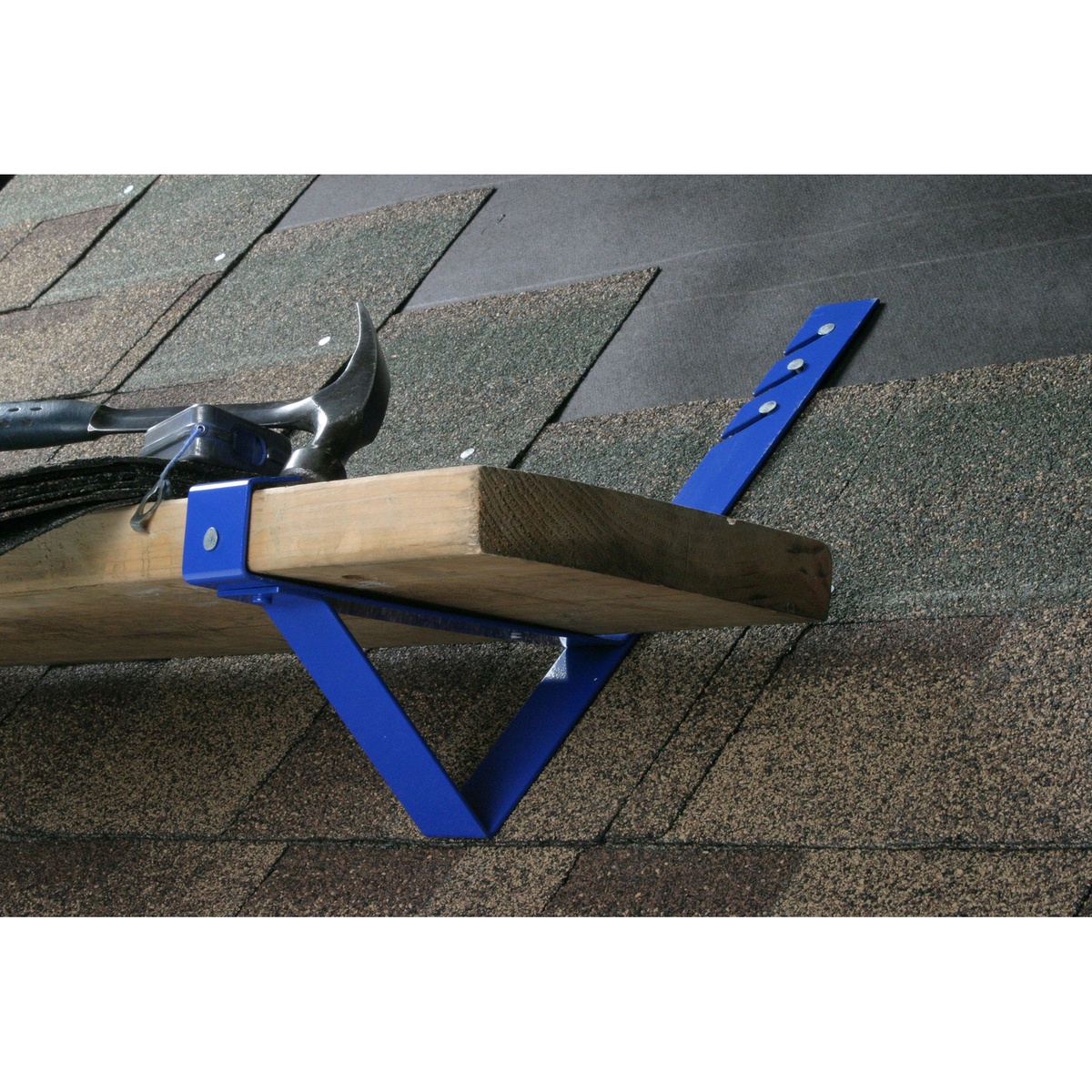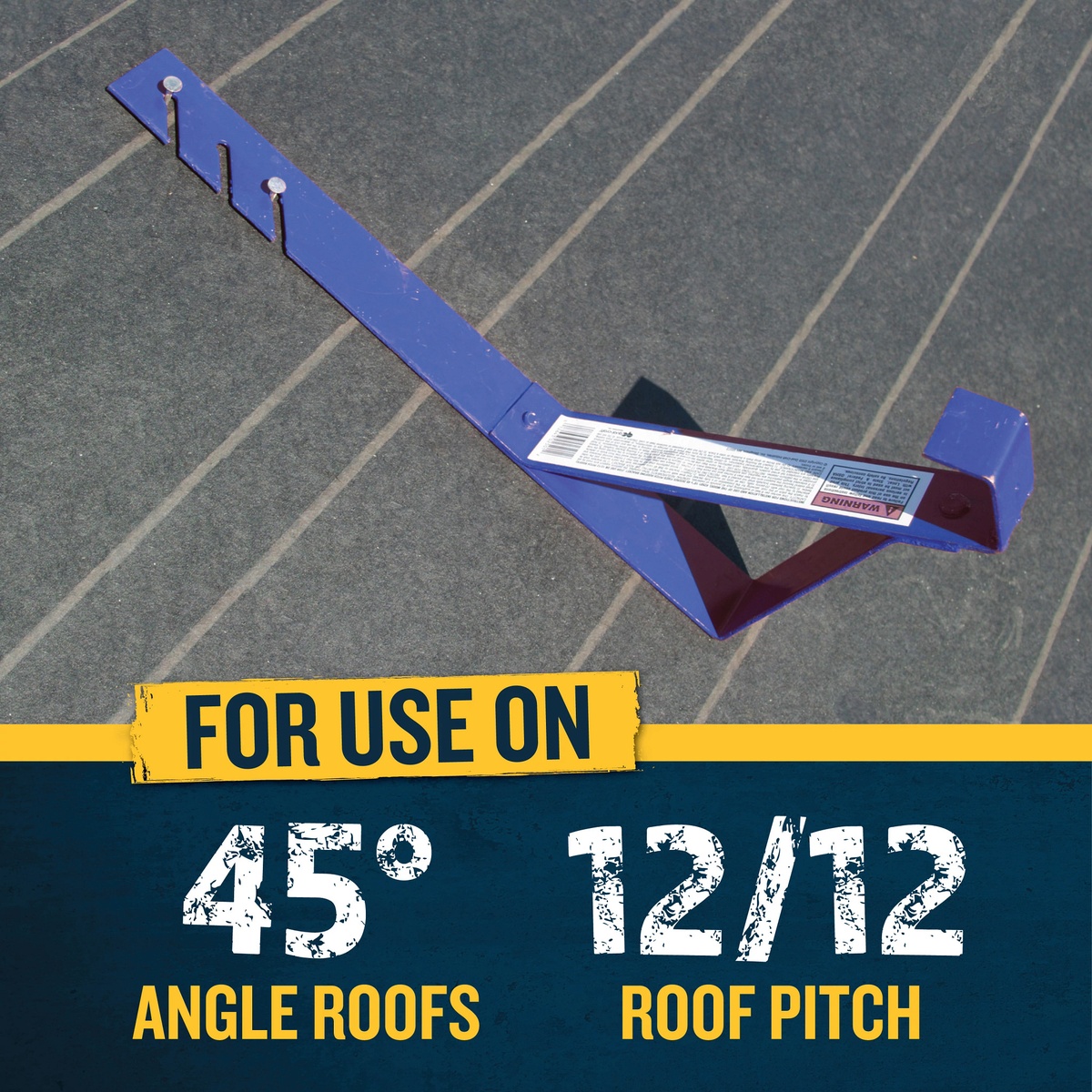 Accommodates a 12/12 (45?) roof pitch to create a stable work platform. Constructed of durable, powder-coated steel. Rated to support one worker per 8 feet of platform plus 40 pounds of materials.