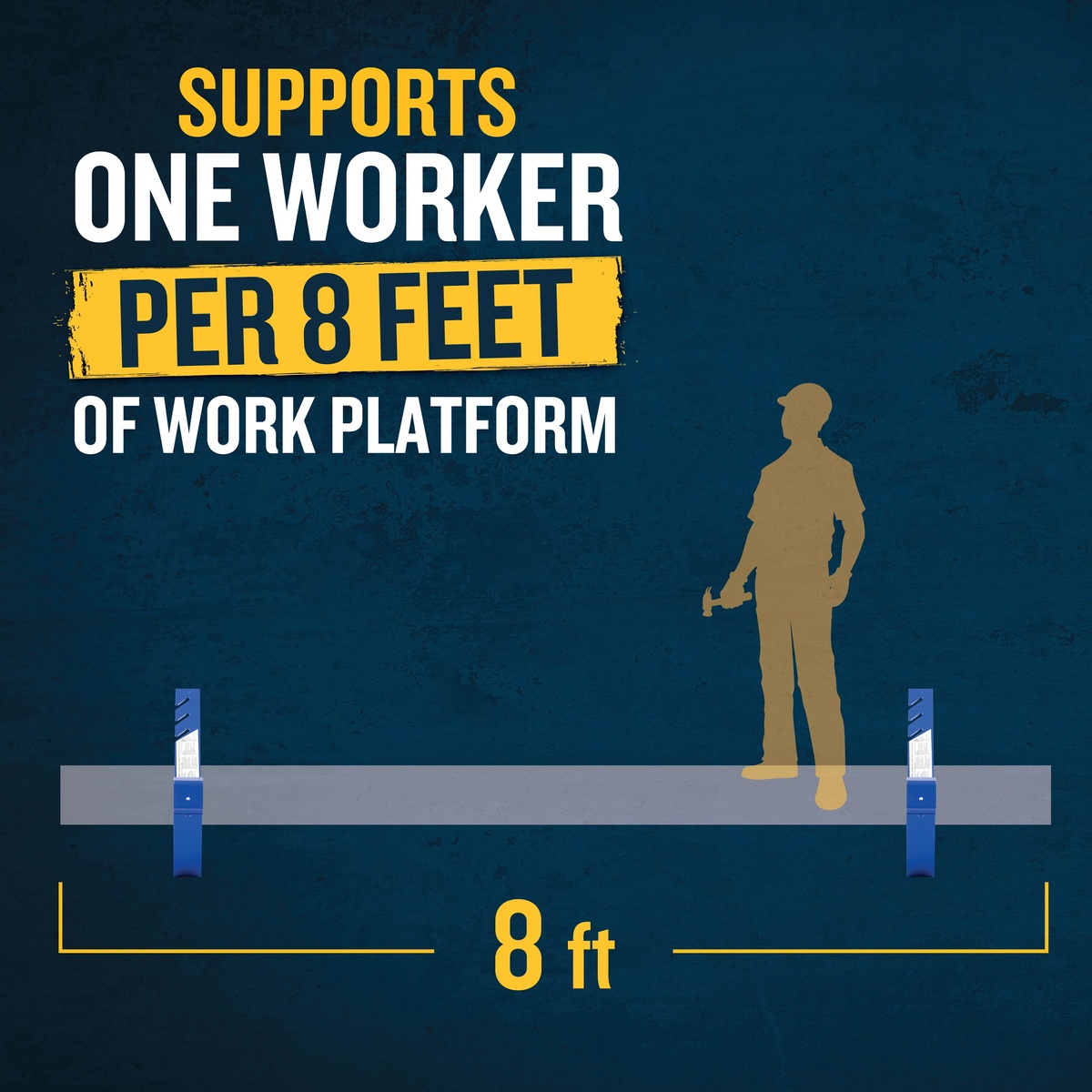 - Supports one worker per 8 ft of work platform plus 40 lbs of materials