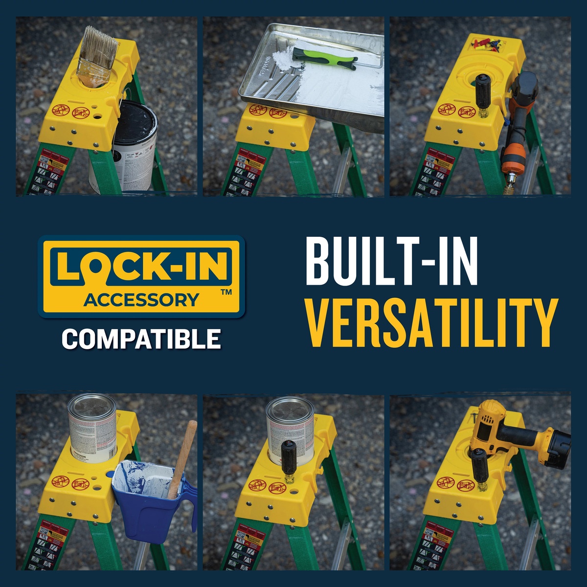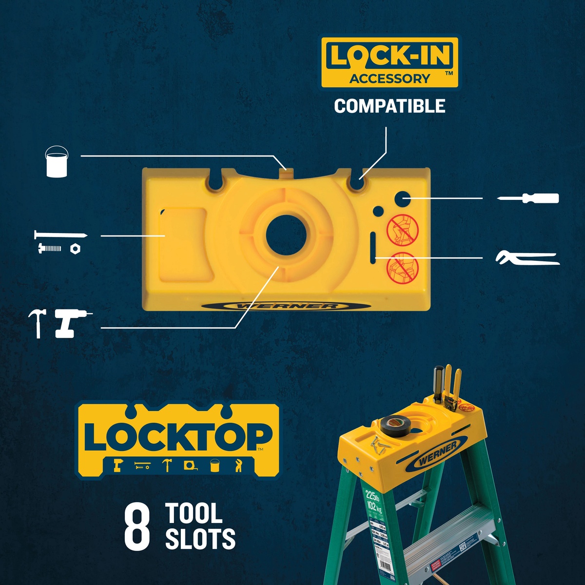 - LOCKTOP ladder top holds up to 8 tools; Lock-In accessory compatible