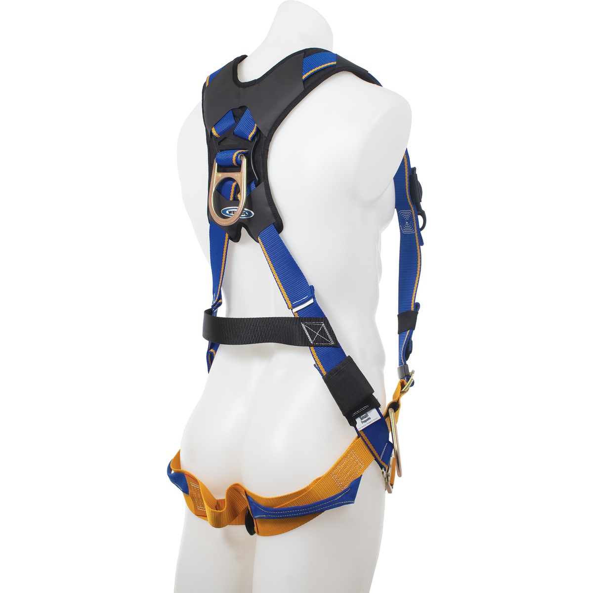 Blue Armor H163001 Climbing/Positioning Full Body Harness in Size S features back, hip and front D-rings for versatile fall protection, positioning and climbing tasks. Built-in Relief Handles help achieve the gravity override position to mitigate suspension trauma. WebAlert inspectable webbing and multiple impact indicators make wear and damage visible for easier inspection. Lightweight, form-fitting padding with breathable interior enhances comfort, while bright colors improve jobsite visibility. Quick-Connect chest and leg buckles provide fast, easy connections, and 5-point adjustments ensure an optimal fit. Meets ANSI Z359.11 standards.
