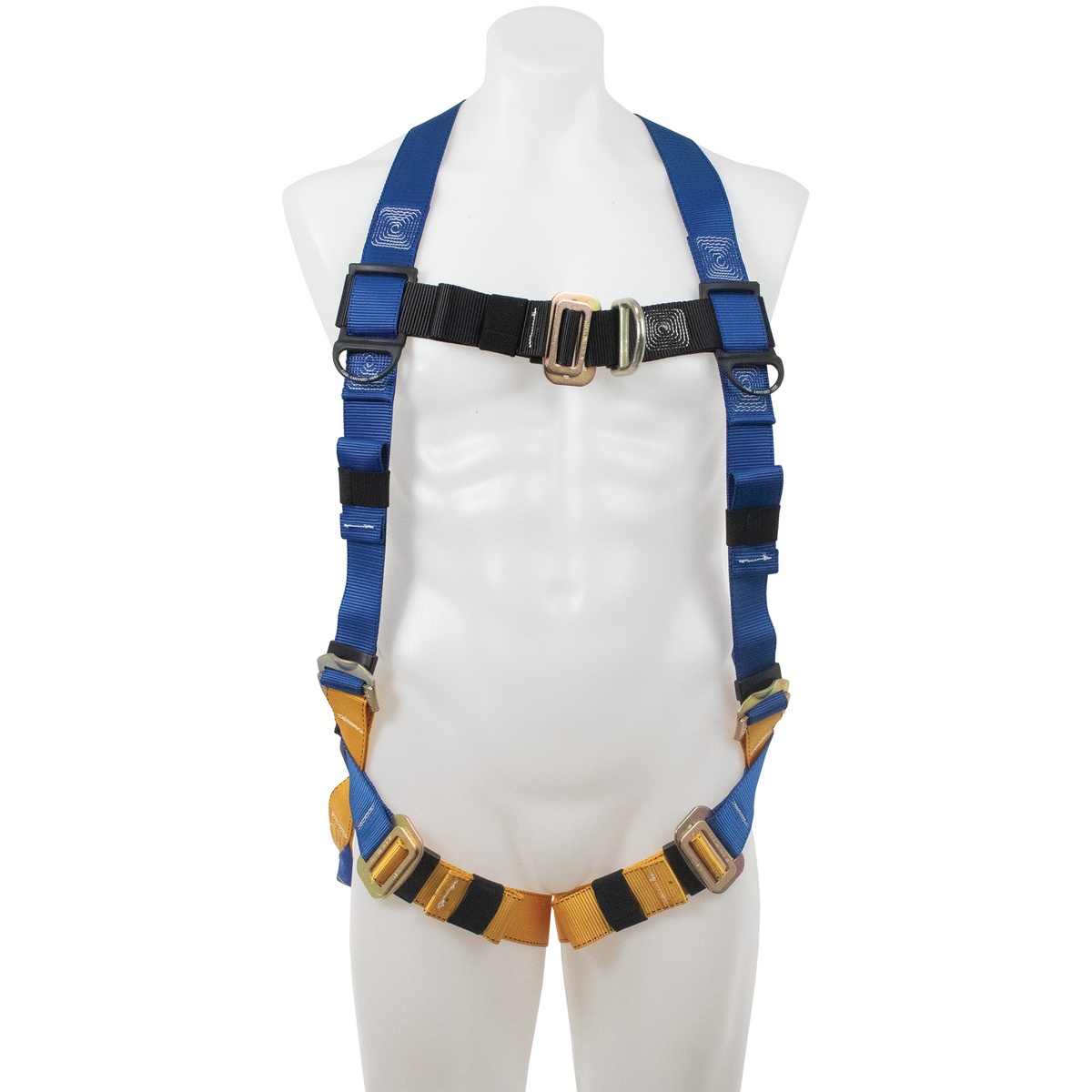 The Werner LITEFIT Climbing Harness offers 5-point adjustments for a secure, comfortable fit and lightweight hardware with bright colors for visibility on the jobsite. It features a high-strength alloy-steel dorsal D-ring on an adjustable pad, a chest D-ring for climbing applications, and slotted pass-through buckles on the leg and chest straps that fasten without twisting. Ideal for climbing and fall arrest needs and built for durability and ease of inspection.