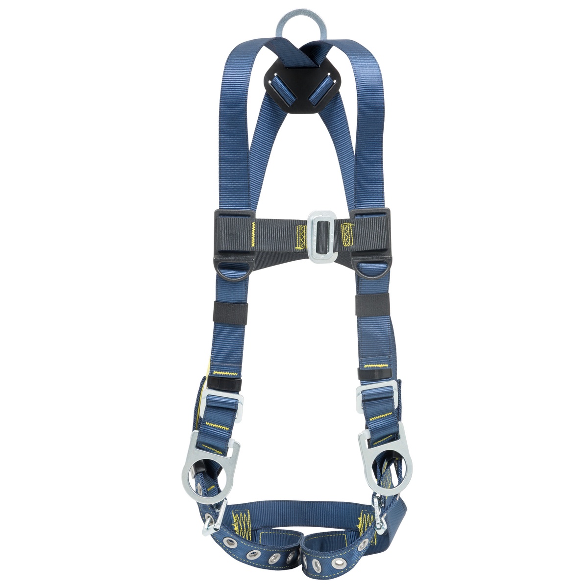 The BaseWear entry-level full body harness delivers adjustability, visibility, and durable performance. It features a sliding dorsal back D-ring and side/hip D-rings for positioning, slotted pass-through chest buckle, tongue buckle leg straps, and lightweight hardware. Impact indicators and a label protector simplify inspection. Universal size with 5 points of adjustment. Meets ANSI Z359.11-2021 and OSHA 29 CFR 1910.140 & 1926.502.