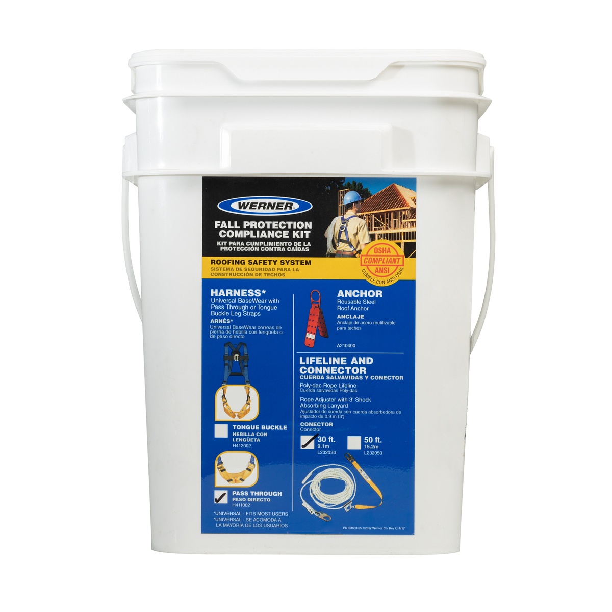 Werner K112101 Roofing Kit, 30ft Deluxe Tongue Buckle Harness, Waterproof Bucket