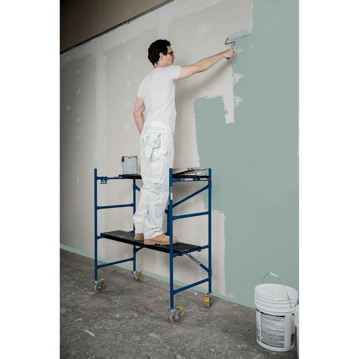 - 4-ft steel rolling scaffold reaches up to 9 ft 6 in for tasks and access
