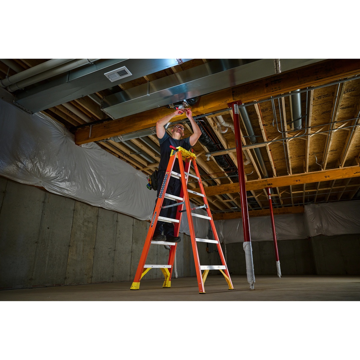 Werner NXT1A08 8 ft Type IA Fiberglass Step Ladder, 300 lb Load, LOCKTOP Tool Top, Orange