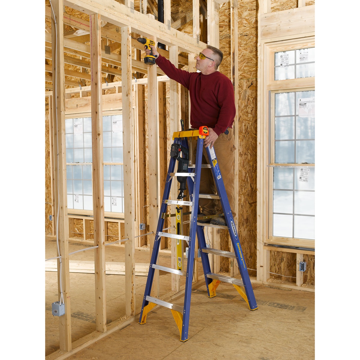 Werner OBCN06 6ft Type IAA Fiberglass Contractor JobStation Step Ladder, Single-Sided, Blue