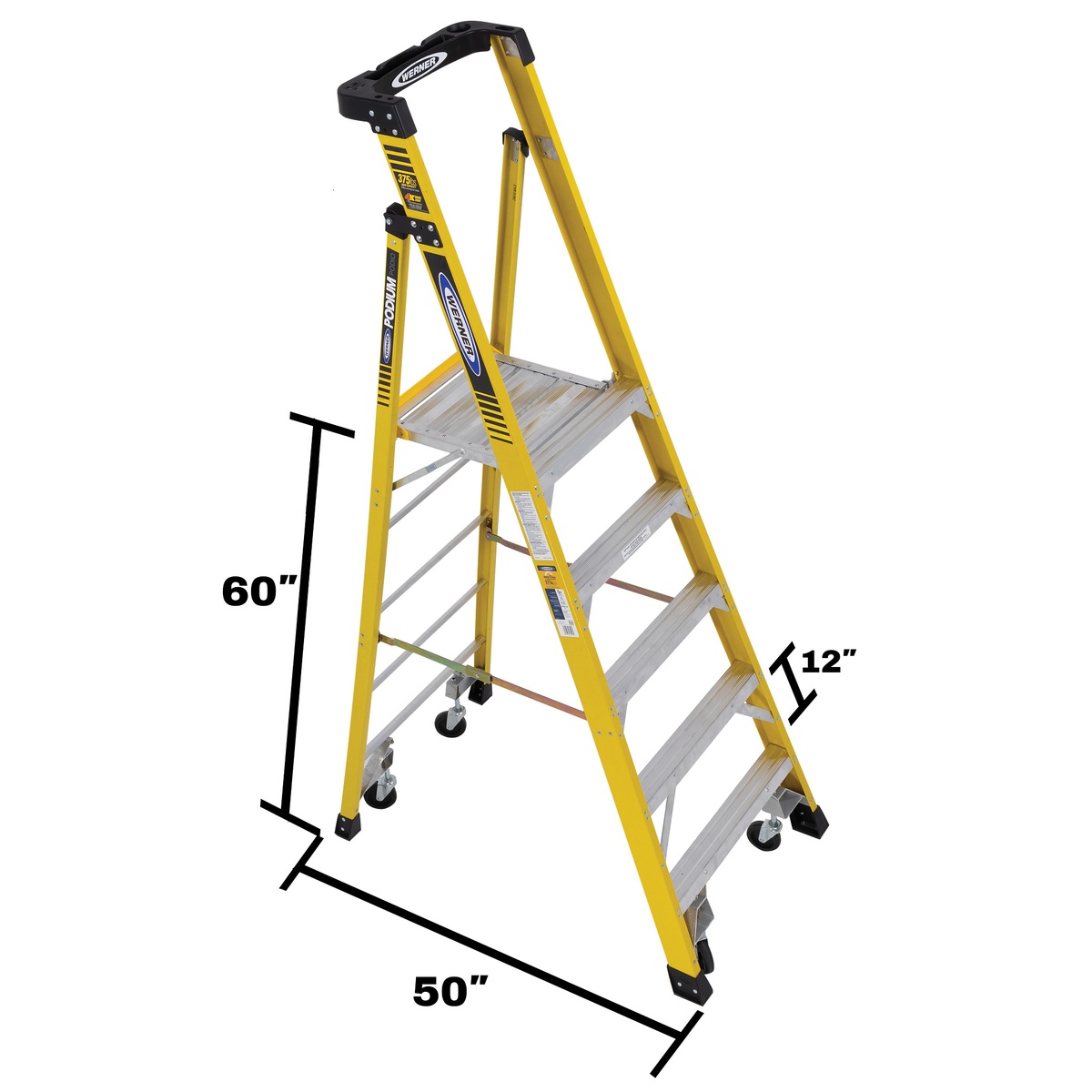Werner PD7305 11ft Reach Fiberglass Podium Ladder, 5ft Type IAA, Yellow