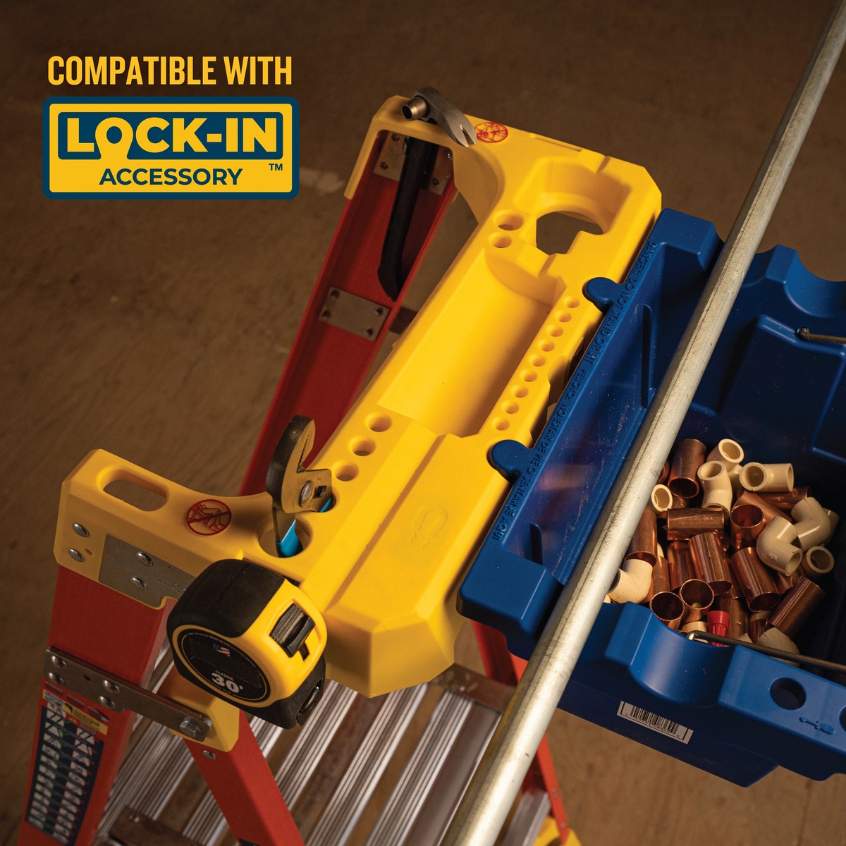 • Wraparound LOCKTOP guardrail with accessory mounting plate and tool storage