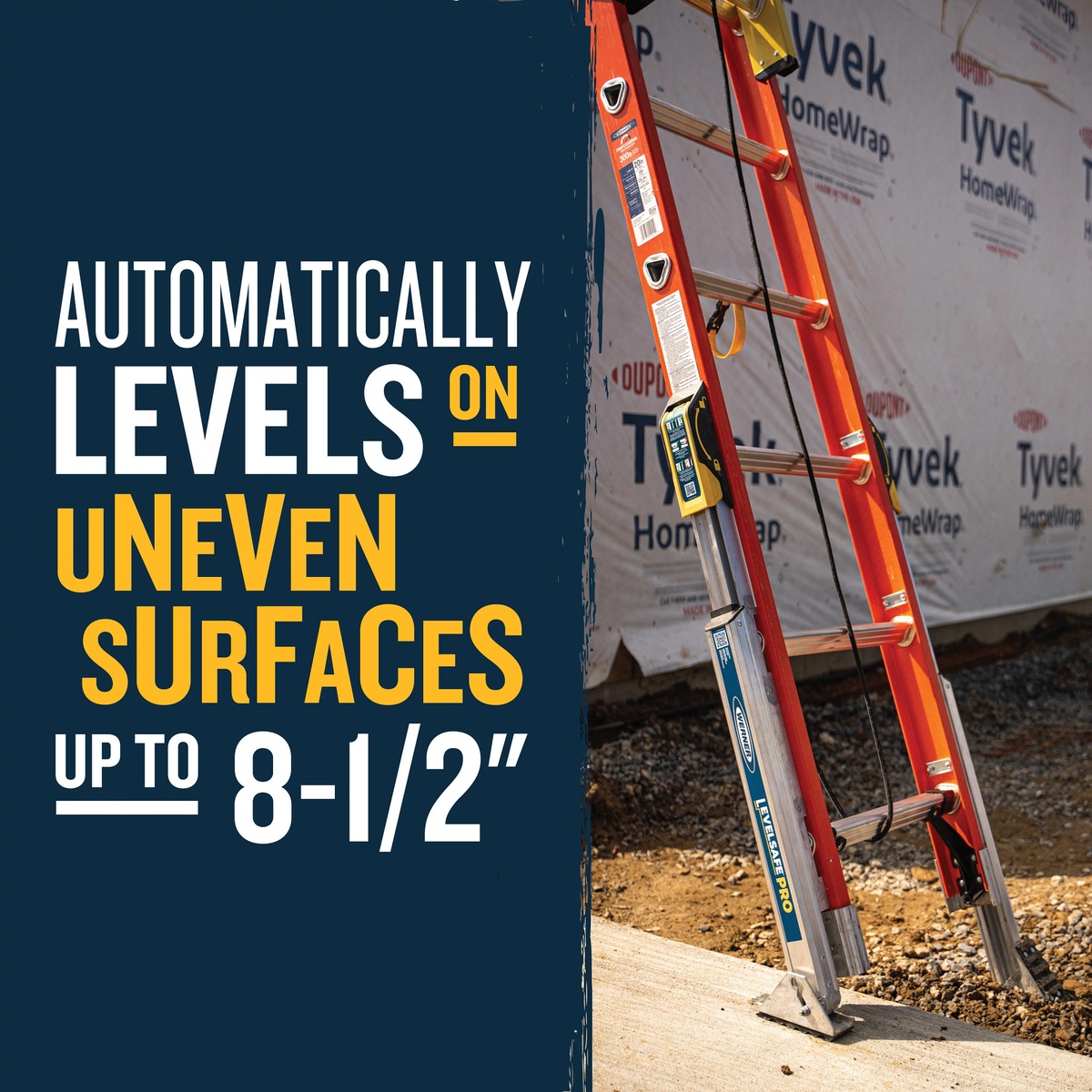 - Automatically levels Werner extension ladders on uneven surfaces up to 8.5 in