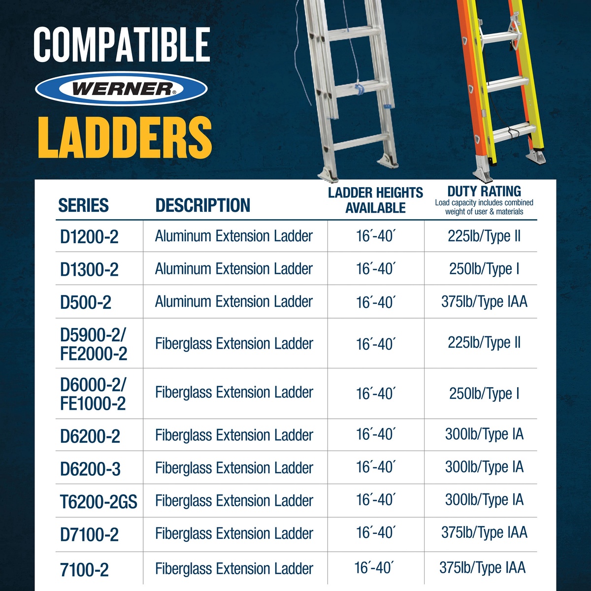 - Compatible with select Werner ladders; maintains ladder duty rating