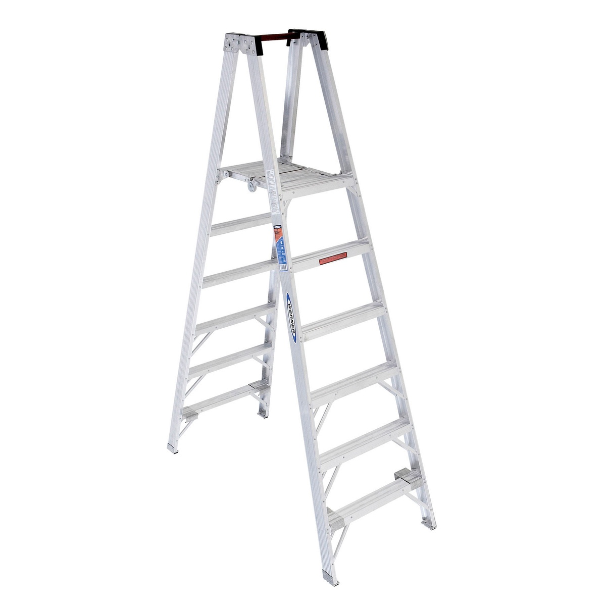 Werner PT376 12ft Reach Height Aluminum Platform Ladder, 6 ft, Type IA, 300 lb Duty Rating