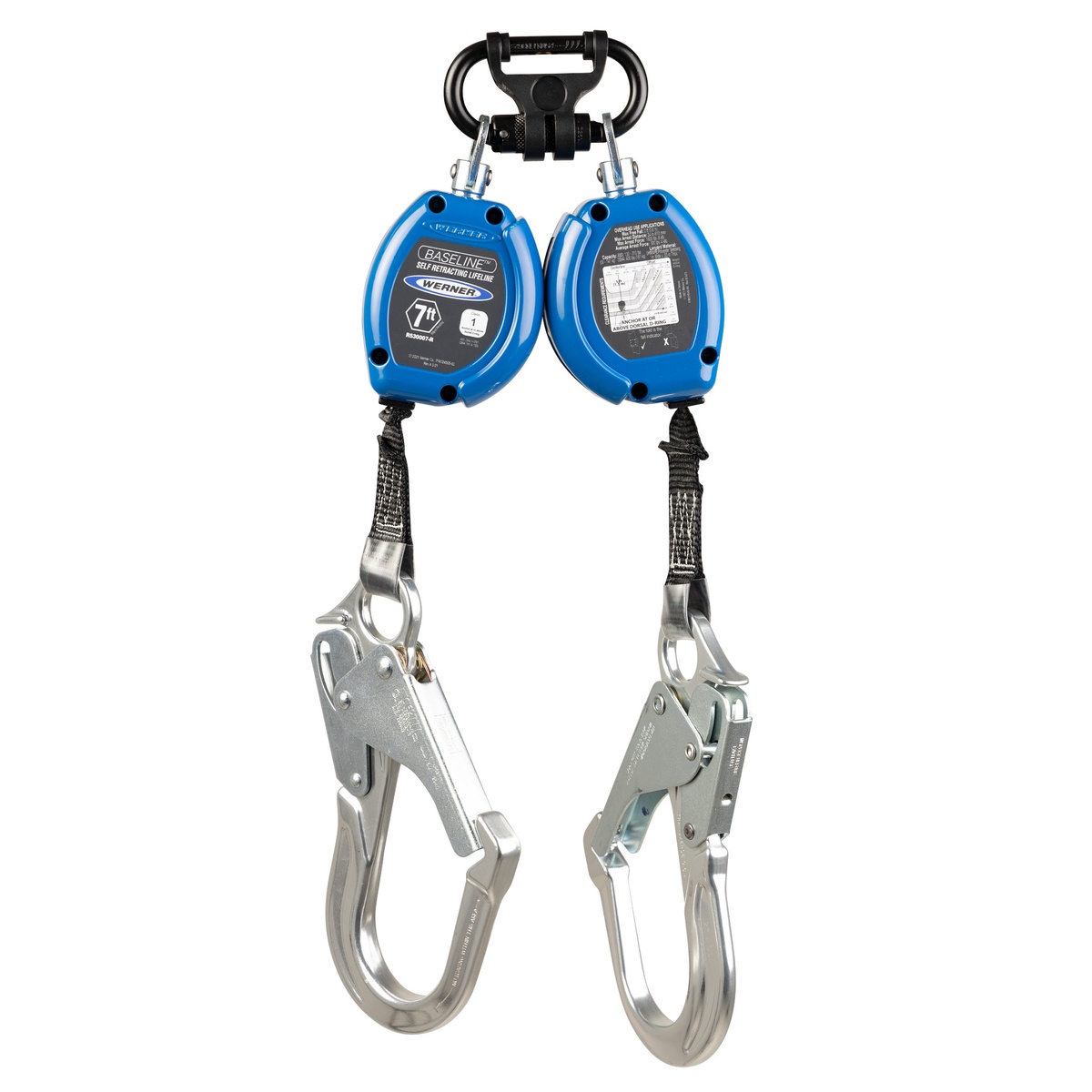 Werner R531007-R Baseline TwinLeg Web Self-Retracting Lifeline, 7 ft, Aluminum Rebar Hooks