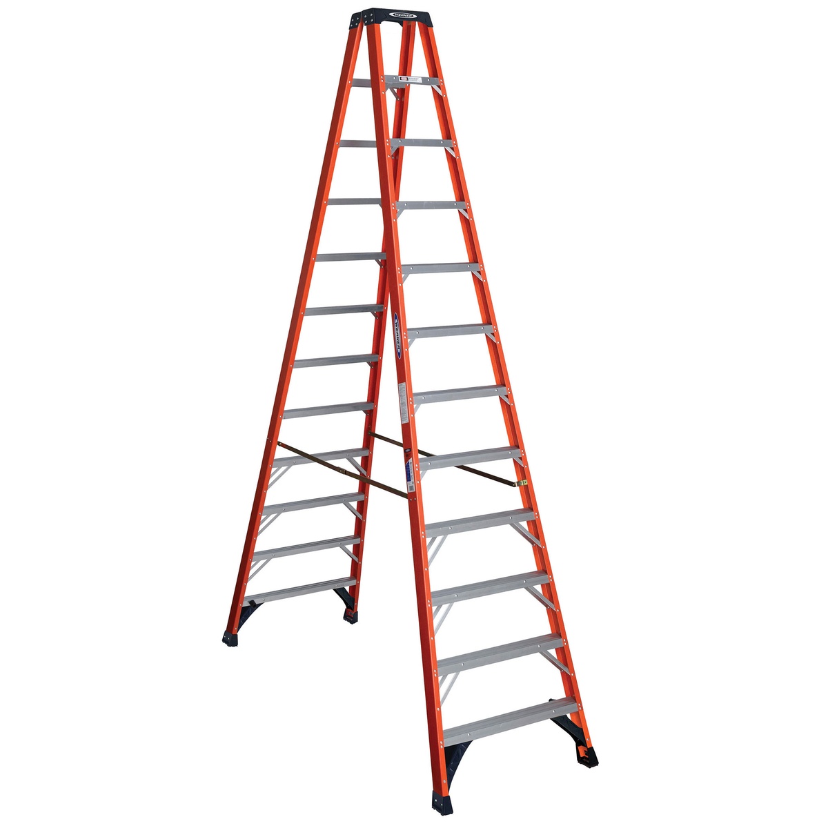 Werner T6312 12ft Type IA Fiberglass Twin Step Ladder, Orange, 300 lb per side